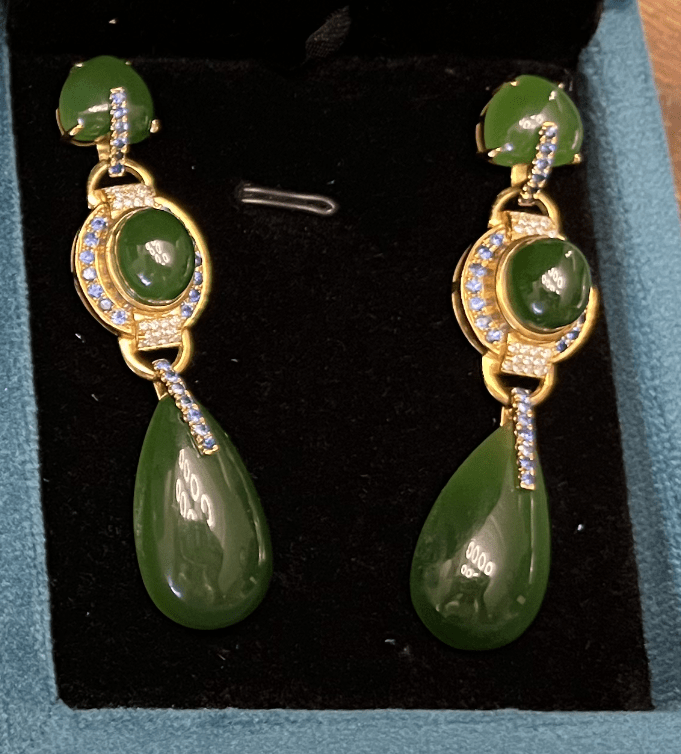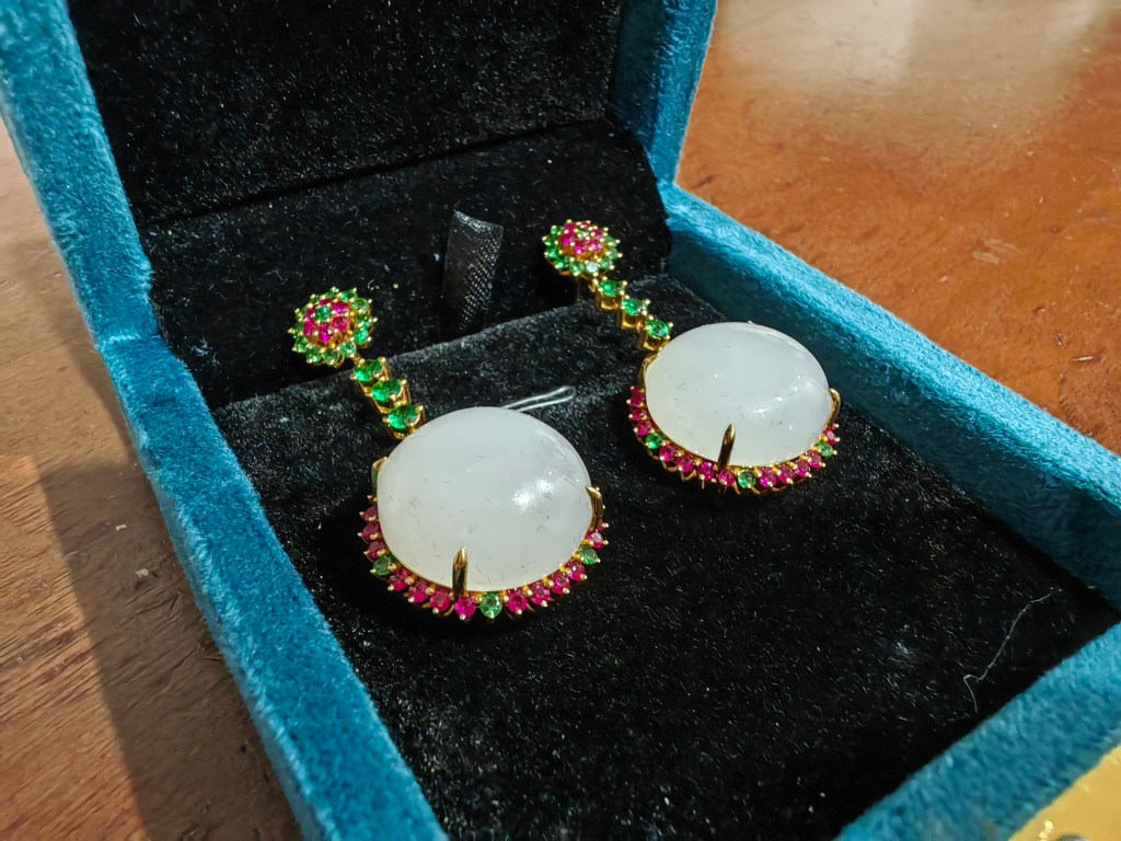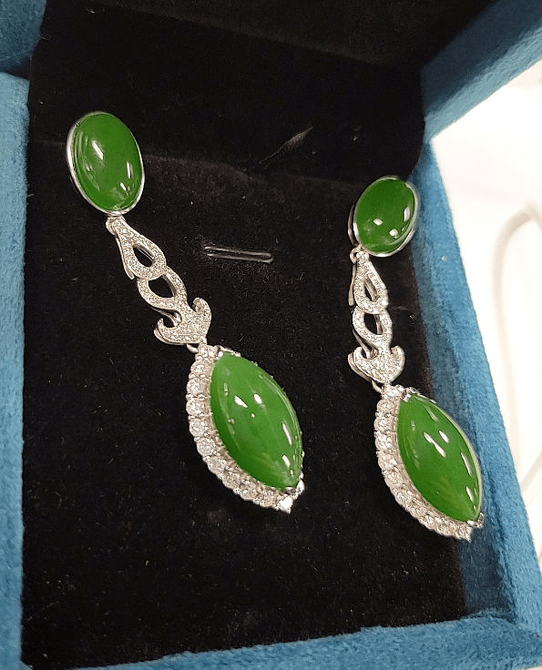 32:碧玉满钻大耳环