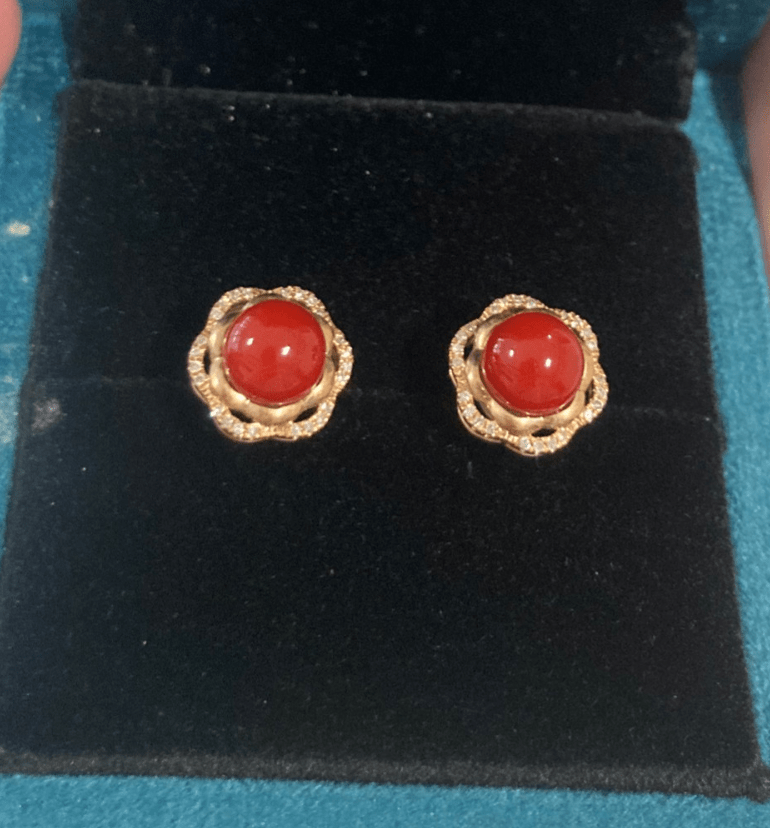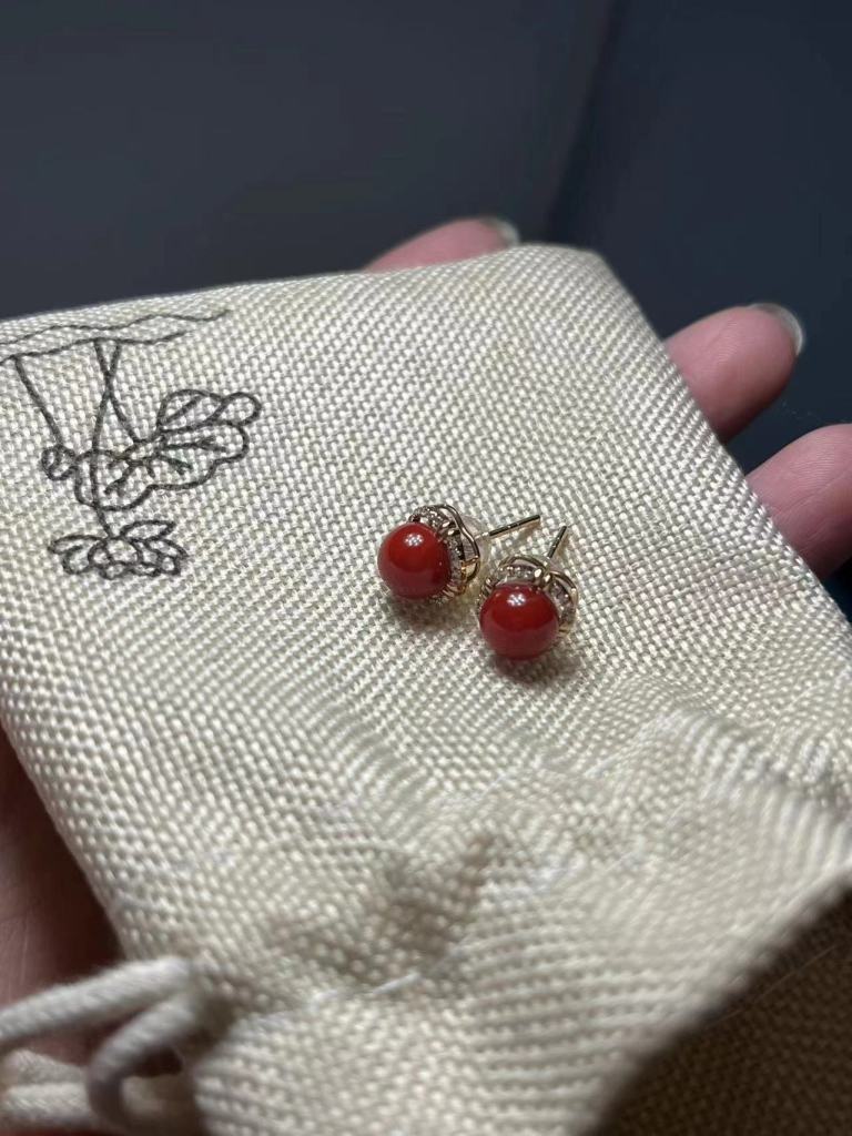 13:红珊瑚如意耳钉