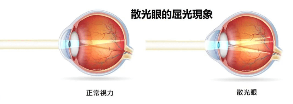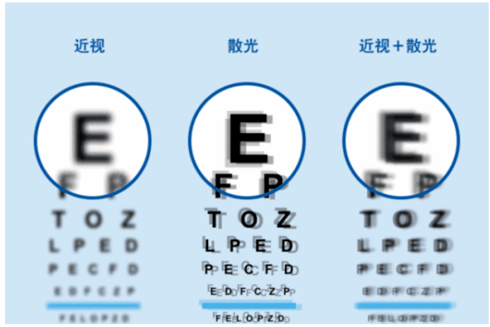 患者的眼睛不能将光均匀地聚焦在视网膜上,导致所有距离的视力失真或模糊。